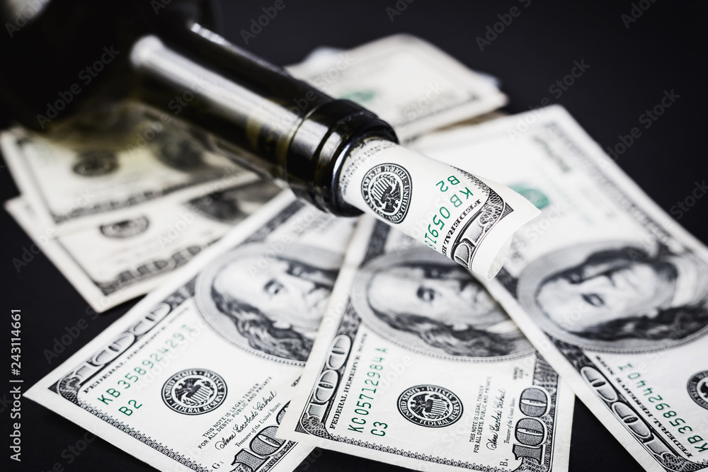 Bild links wird gekauft, ggf bearbeiten - die Dollarnoten sollen auf jeden Fall erkennbar bleiben, Bezug zu bekanntem Investment-Wein (Harlan Estate). Adobe-Link